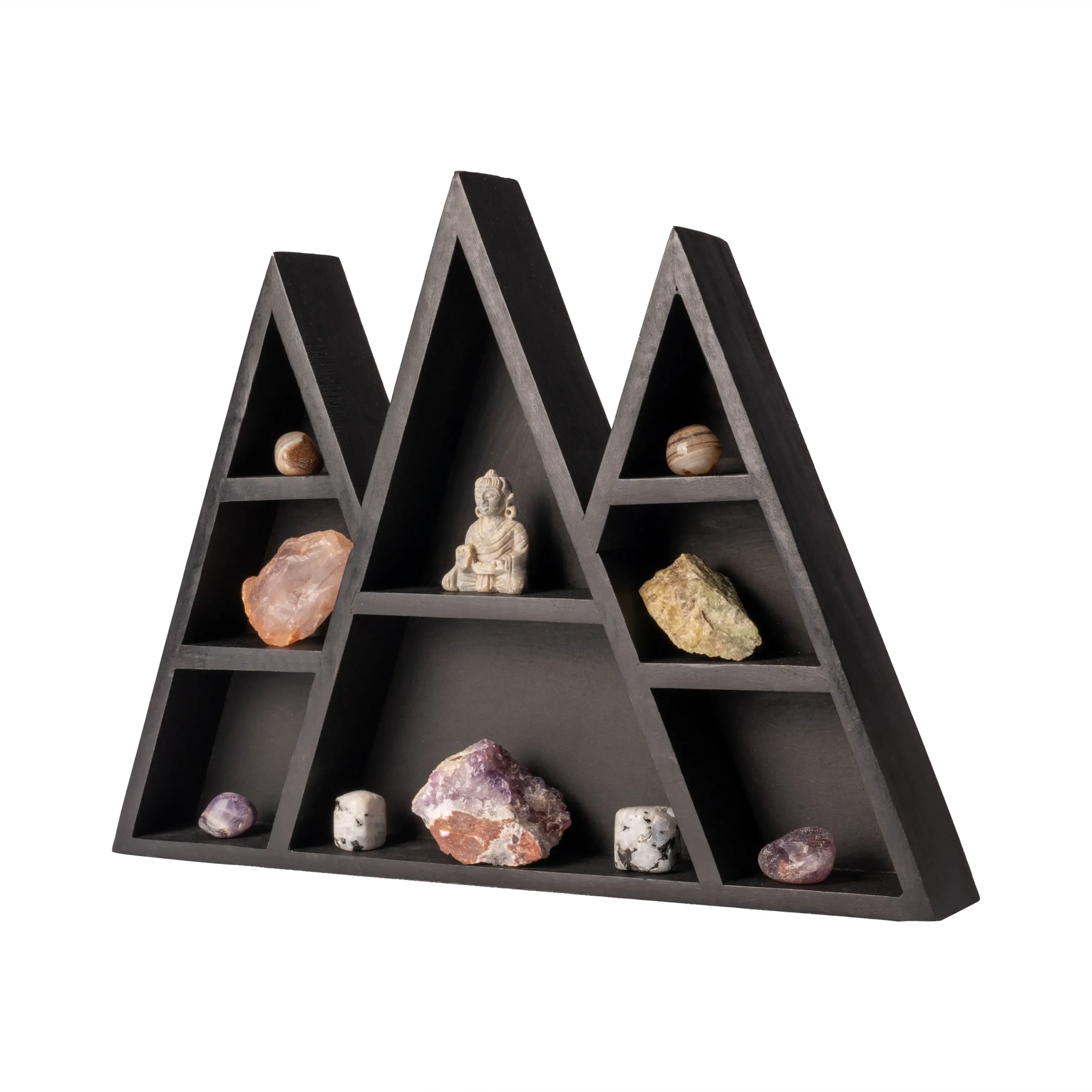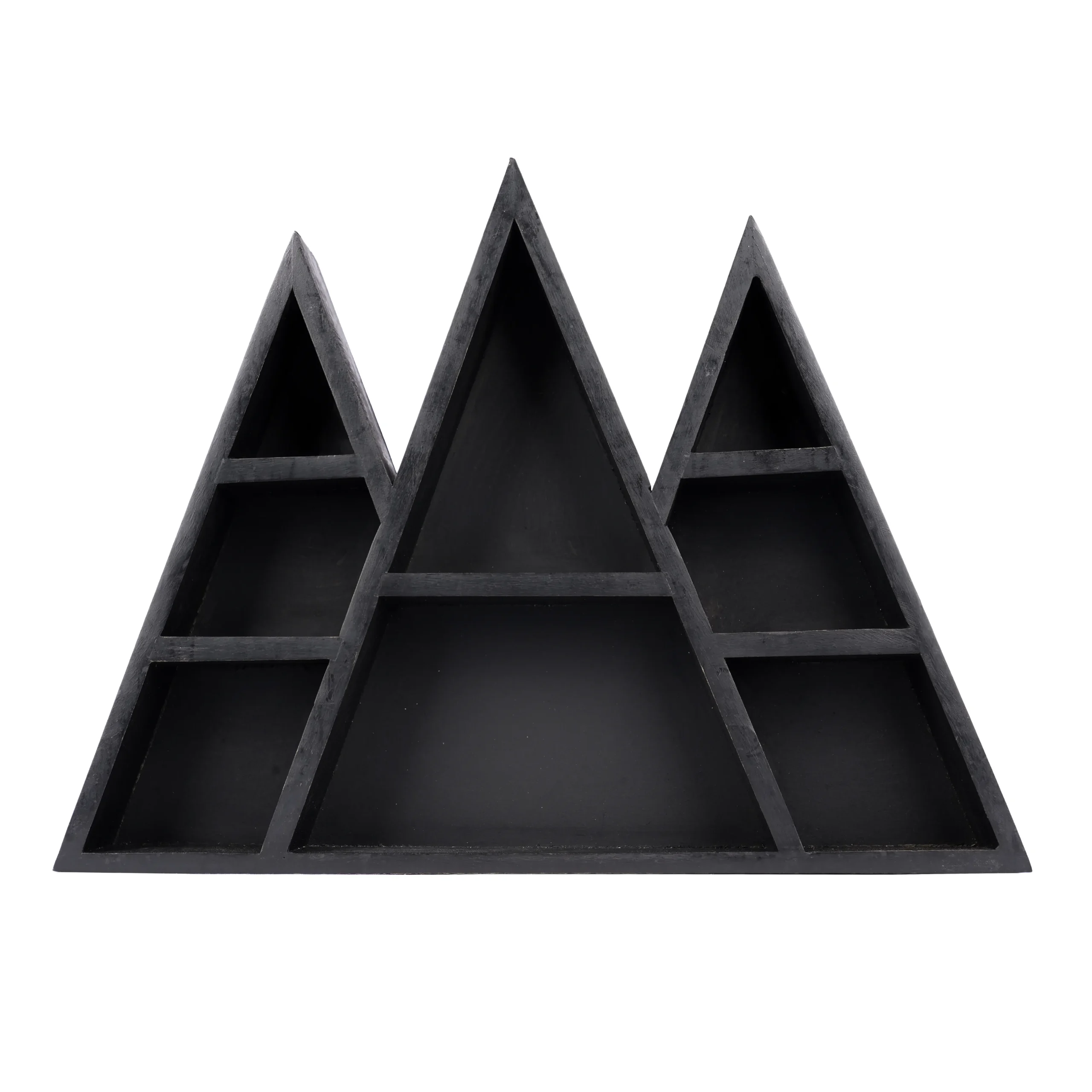Description: This stylish wall rack features a three-peak design, perfect for displaying decorative items or photos. The black finish adds a touch of sophistication to any room.